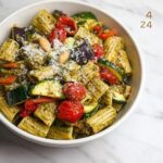 This Balsamic Roasted Veggie and White Bean Pasta is a vibrant and wholesome dish featuring a medley of caramelized vegetables tossed with al dente fusilli, protein-rich cannellini beans, and a flavorful pesto sauce. It’s a perfect balance of savory, tangy, and fresh flavors, ideal for a satisfying vegetarian meal.