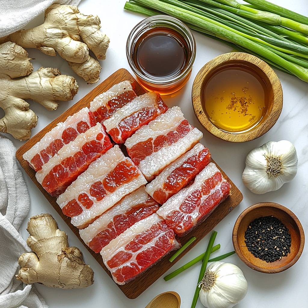 • 1 lb Pork Belly (skinless, fresh, uncured): The star of the dish, offering rich fattiness and tender bites after cooking.