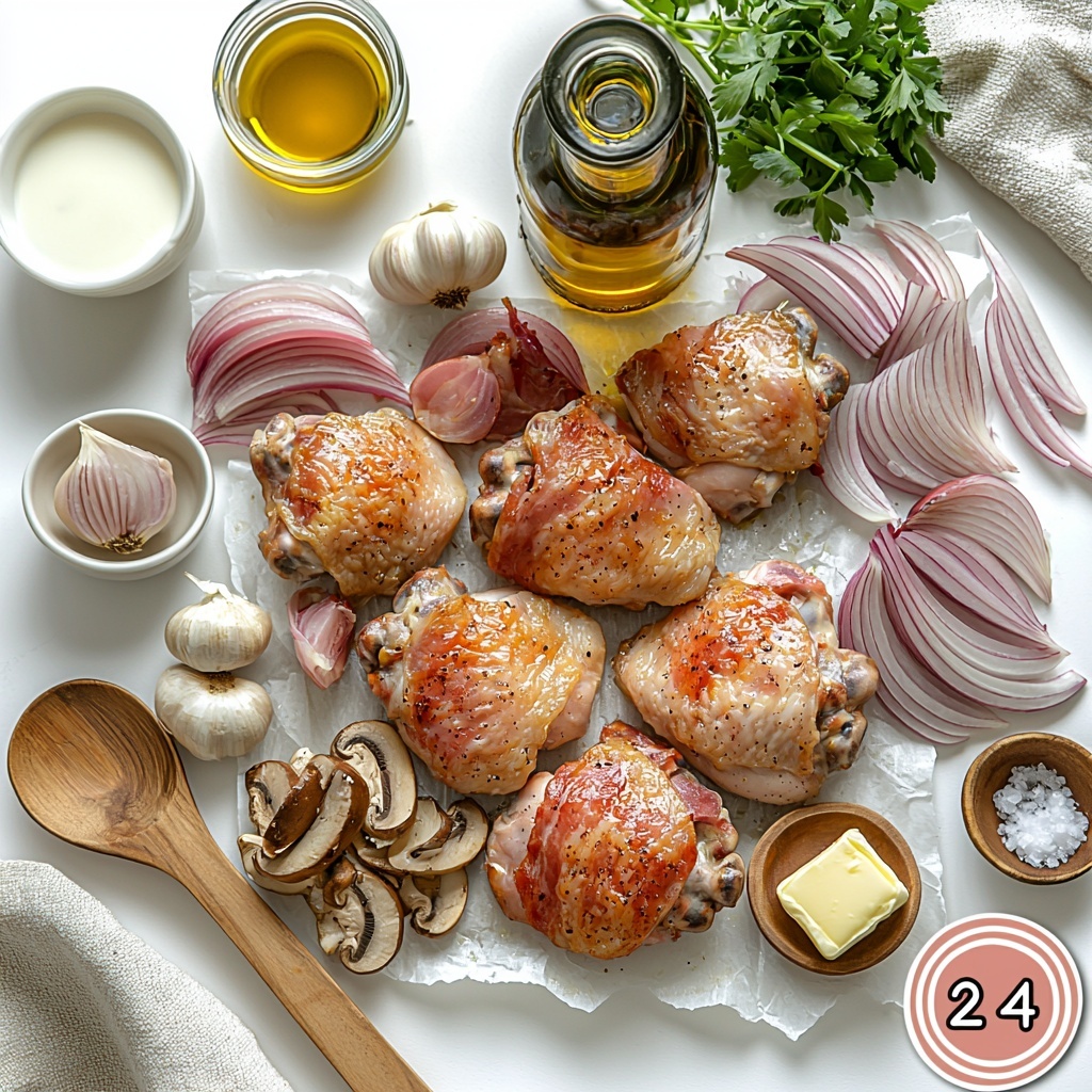 • 250 grams mushrooms, sliced: Earthy flavor and meaty texture complement the chicken perfectly.