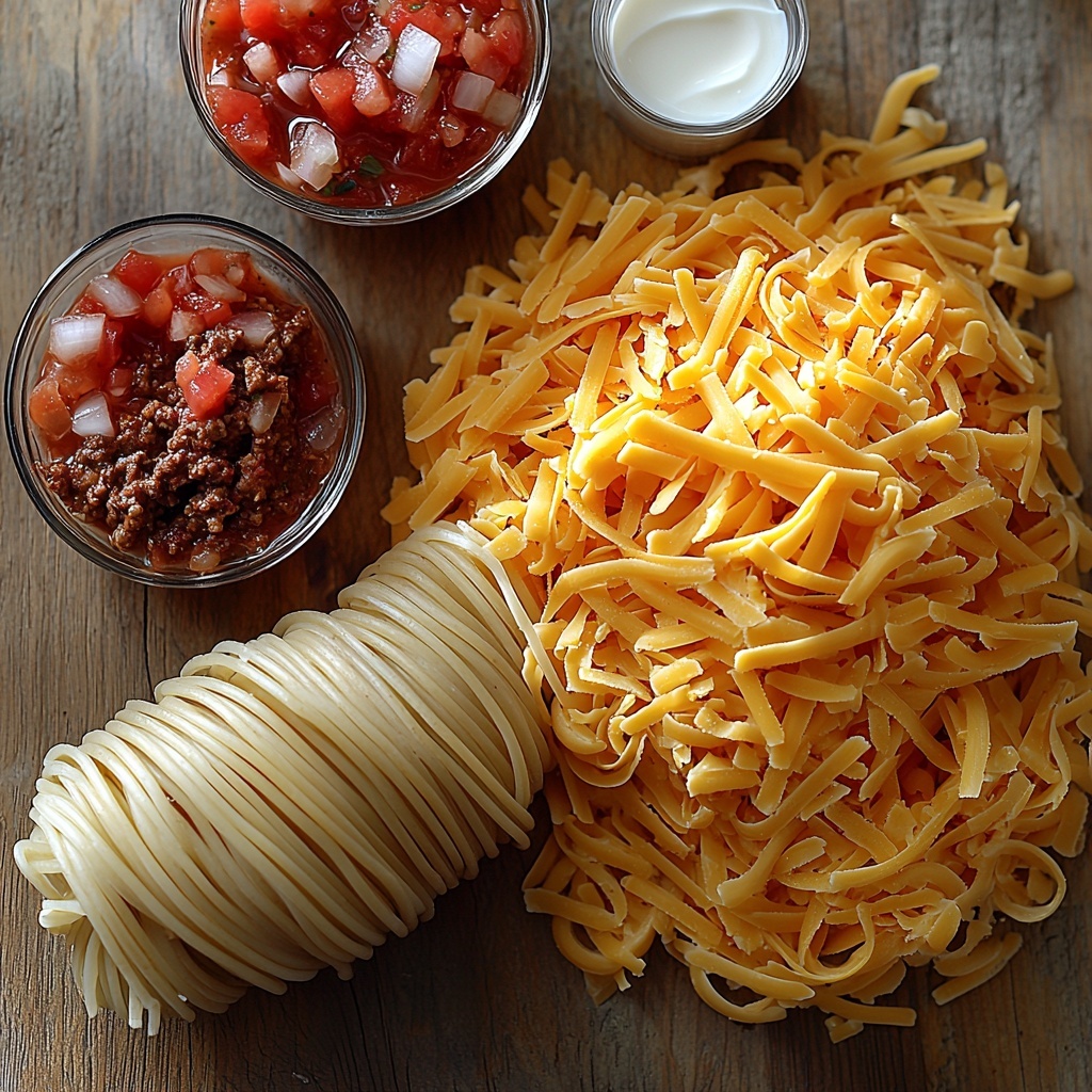 Gathering a handful of simple, everyday ingredients is all it takes to whip up this delicious dish. Each component plays a crucial role, from the savory ground beef providing hearty depth, to the creamy cheese that brings it all together in the most comforting way.