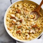 This creamy Chicken Mac and Cheese combines tender seared chicken with a rich, flavorful cheese sauce made from cheddar and Parmesan. The sauce is enhanced with white wine and a blend of spices for a comforting and delicious meal that serves six in about 50 minutes.