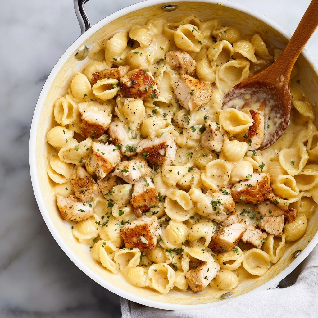 Once your pasta is cooked and drained, reduce the sauce to low heat. Gradually sprinkle in the shredded cheddar and Parmesan cheeses, stirring continuously until fully melted and silky smooth. Finally, fold in the pasta and bite-sized chicken pieces. The sauce will be luscious and generous—don’t worry, the pasta soaks it up beautifully as it stands.