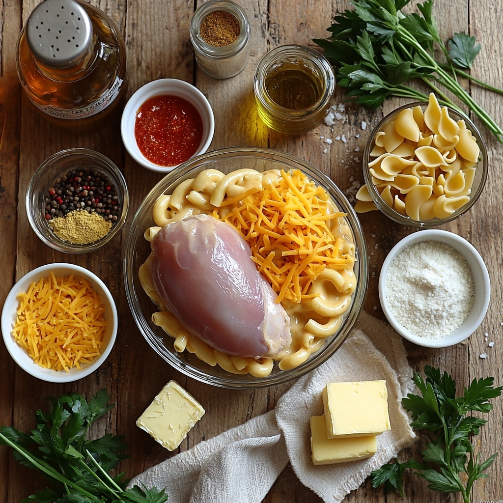 The beauty of this Chicken Mac and Cheese Recipe lies in its straightforward, everyday ingredients that come together to build something truly spectacular. Each ingredient is carefully chosen to add layers of flavor, melty creaminess, or that golden glow we all adore.