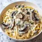 Finishing your Creamy Truffle Mushroom Fettuccine Recipe with a sprinkle of freshly grated Parmesan cheese or a few thinly sliced fresh mushrooms adds a lovely touch of texture and visual appeal. For a pop of color and subtle freshness, a few leaves of chopped parsley or a drizzle of extra virgin olive oil are also wonderful options.