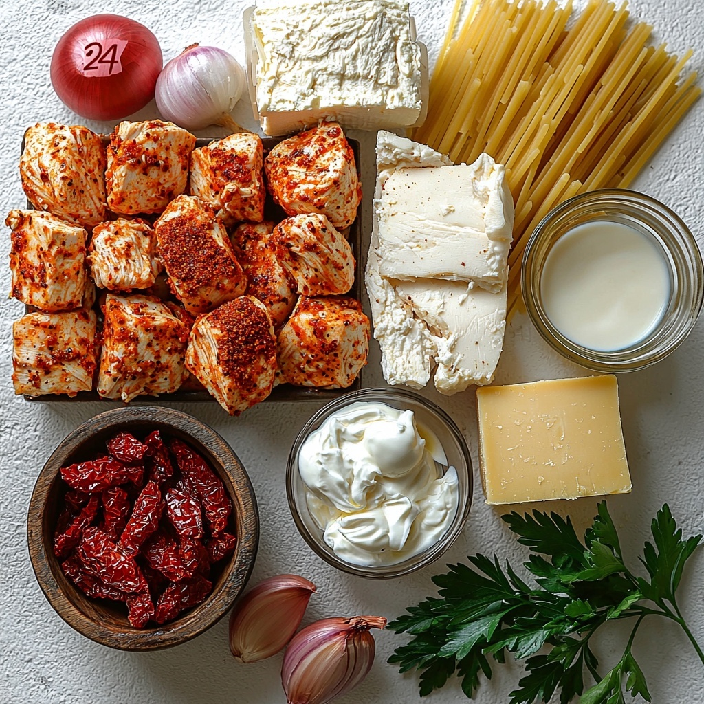Gathering the right ingredients for this Crock Pot Cajun Chicken Pasta Recipe is refreshingly straightforward. Each component has a purpose, from the spicy Cajun seasoning that wakes up the dish, to the creamy cheeses that wrap everything in richness, to the pasta that delivers the perfect texture. Here’s what you’ll need to whip up this flavorful meal.