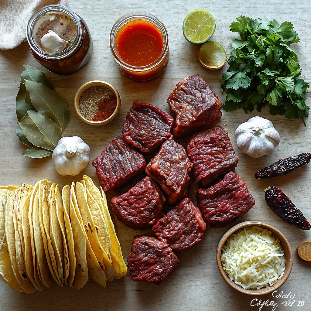 The magic of this Crockpot Birria Tacos Recipe lies in its beautifully straightforward ingredients. Each plays an important role, from the aromatic dried chiles that build layers of smoky heat to the tender beef chuck roast that yields juicy, melt-in-your-mouth texture. Together, they create a perfect harmony of flavors and colors that make this dish truly special.