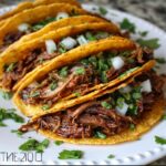 These tacos shine on their own but pair wonderfully with simple sides like Mexican rice, refried beans, or a light cabbage slaw. The slaw adds a refreshing crunch, while rice and beans keep the meal hearty and satisfying. You can also serve a small bowl of the rich cooking liquid, known as consomé, for dipping — it’s the ultimate finishing touch that deepens every bite.
