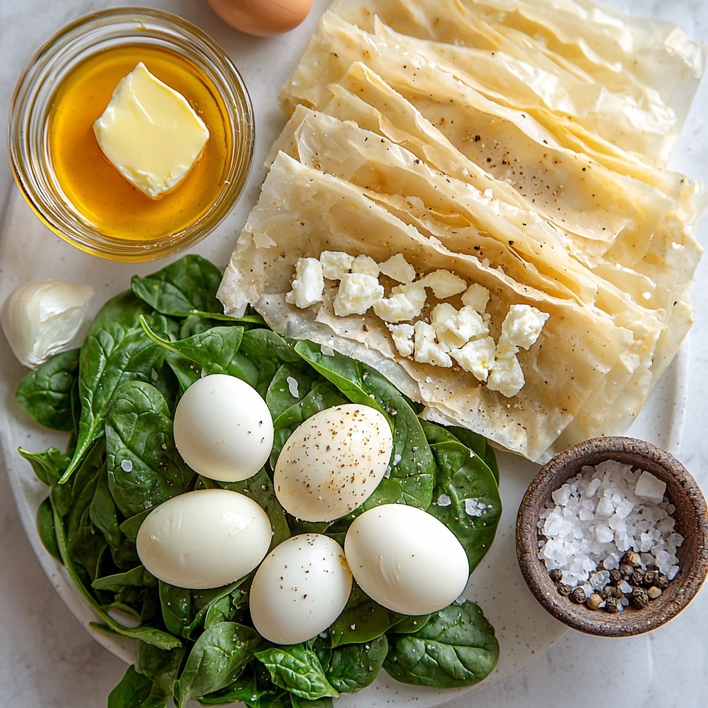 Every ingredient in this recipe plays a vital role, creating a perfect balance of flavor, texture, and color. The freshness of the spinach pairs beautifully with the creamy feta, while the delicate phyllo dough adds that irresistible crunch. The eggs bring a festive and filling touch, making this pie truly special.