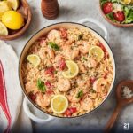 This vibrant Lemony Orzo with Shrimp and Feta is a quick and flavorful skillet meal perfect for a weeknight dinner. Tender shrimp are sautéed and set aside while aromatic onions and garlic build the base flavor. Orzo pasta is toasted slightly before simmering in a zesty lemon-infused chicken broth with fresh tomatoes. Finished with a bright splash of lemon juice, crumbled feta, and fresh basil, this dish is a delightful balance of tangy, savory, and fresh flavors that come together in just 35 minutes.