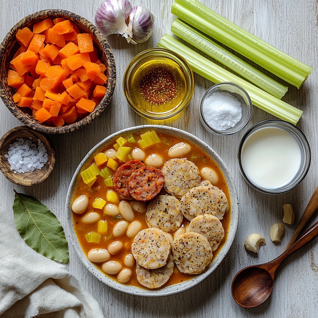 The beauty of this Sausage and Bean Soup Recipe is in its simplicity—each ingredient plays a vital role, lending layers of flavor, texture, and color to create a bowl you’ll keep coming back to. From the aromatic trio of onion, carrot, and celery to the smoky spices and creamy finish, these essentials combine effortlessly.