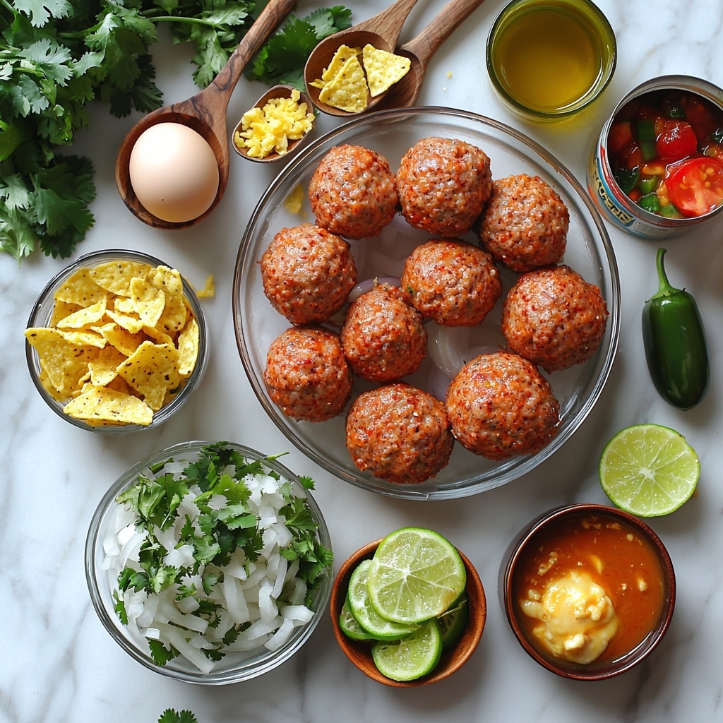 Start by preheating your oven to 375°F (190°C), so it’s ready right when you need to finish cooking. In a large mixing bowl, combine the ground beef with chopped onion, fresh cilantro, finely chopped jalapeño (seeds removed for less heat), minced garlic, ground cumin, chili powder, smoked paprika, salt, and pepper. This blend forms the spicy and aromatic foundation of your meatballs.
