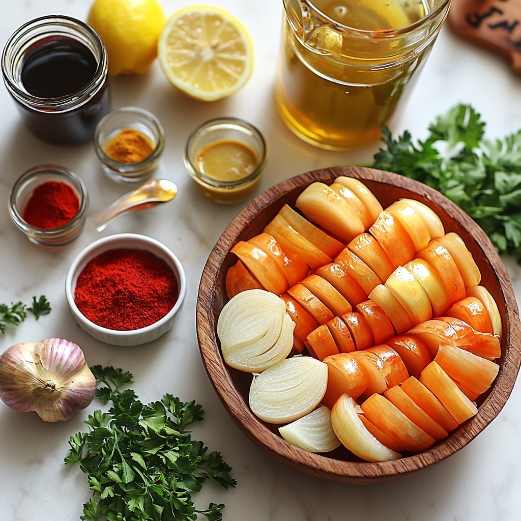 Fresh parsley isn’t just for looks; it adds a clean, peppery bite that contrasts beautifully with the softness of the onions. Lemon wedges served alongside allow guests to add a refreshing zing, lifting the whole dish to a new level of deliciousness.